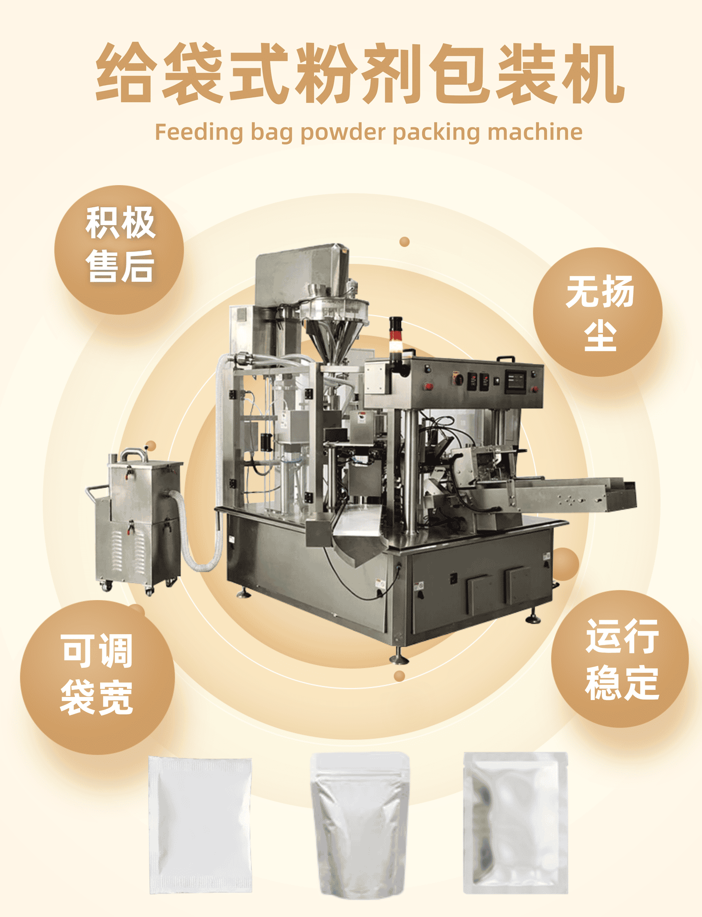 迈驰是一家专业生产全自动粉剂包装机厂家,可根据客户不同物料特性定制一对一方案,可包装粉末、粉剂、粉体等物料,为您解决粉尘扬尘、包装精度的问题。一键调节袋宽,换产...